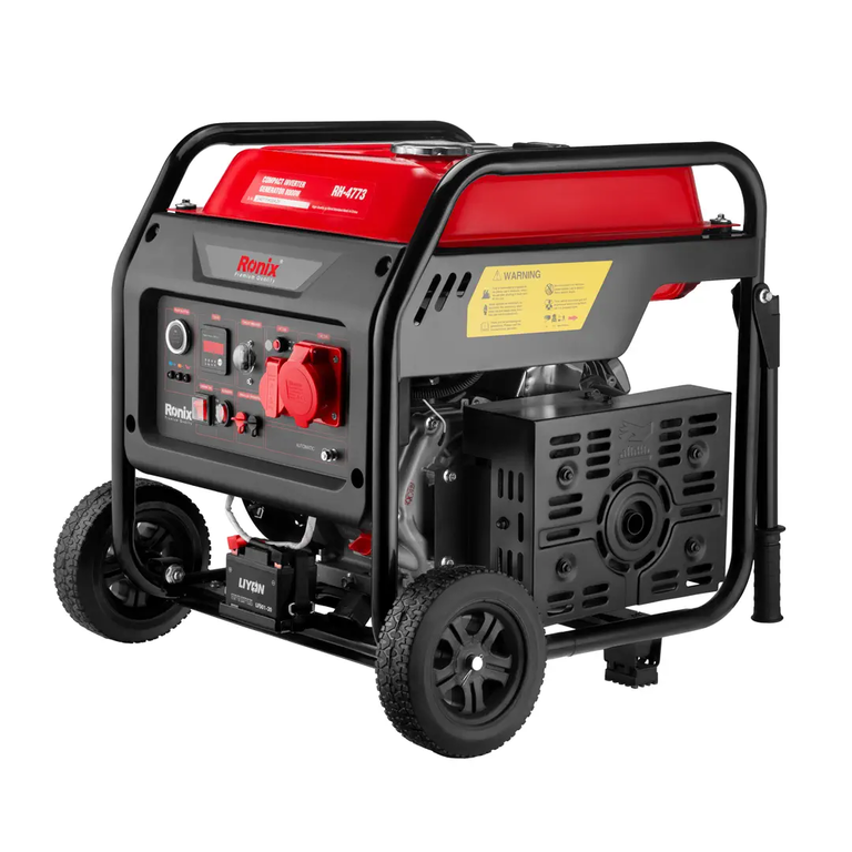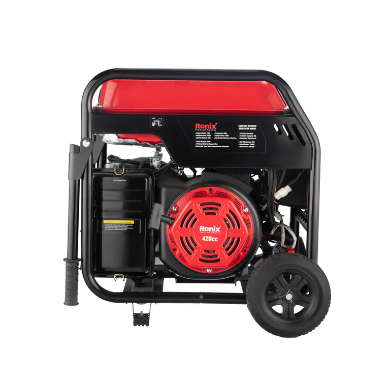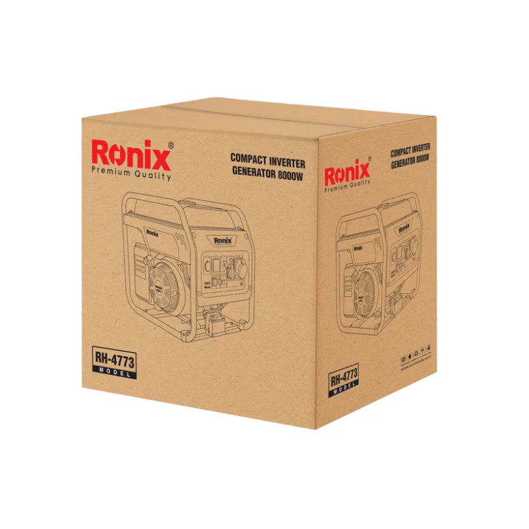 ژنراتور اینورتر کامپکت 8000 وات رونیکس مدل RH-4773 دستگاهی قدرتمند و کارآمد است که برای مصارف عمومی، کارگاهی و صنعتی طراحی و تولید شده است. این ژنراتور با موتور چهارزمانۀ 420 سیسی و حداکثر توان خروجی 8000 وات، عملکردی بینظیر و پایدار را در مدت زمان طولانی فراهم میکند.